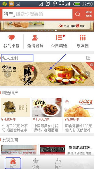 注冊完成后,進入首頁就看以看到相關功能,我們賺錢就是要瀏覽廣告,每瀏覽一個0.005元,點擊“私人定制”欄目中的廣告。