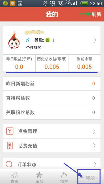 在首頁右下方點擊“我的...”然后再點擊右上方的“刷新”,就可以看到自己的收入。
