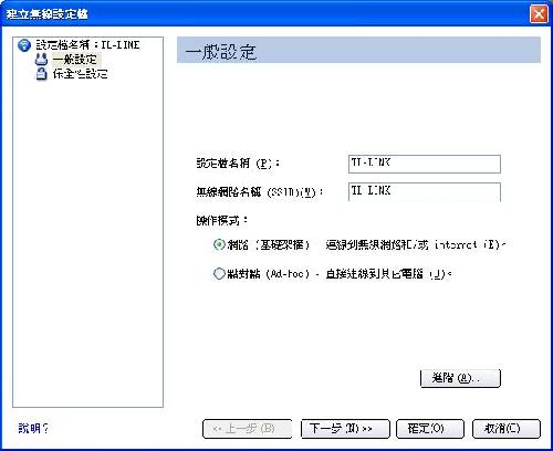 圖7 要將TP-LINK設定為固定連接,點新增,打開建立無線網絡設定檔 圖8 操作模式選“連線到無線網絡和Internet”,點“下一步” 圖9 保全性設定默認,點確定,到此無線網絡已連接完成,固定連接建立好后如下圖。 圖10 打開網上鄰居,哈哈~~,局域網的所有的電腦已經在里面了,打開共享電腦試試,可以訪問了。打開IE,輸入http://www.enet.net,GO~網站也可以上了。 - 五、Ap的安全設置