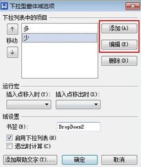 (4)對于帶有下拉選項的電子問卷,使用相同的方法。插入一個下拉表單域并雙擊它。編輯文本內容。