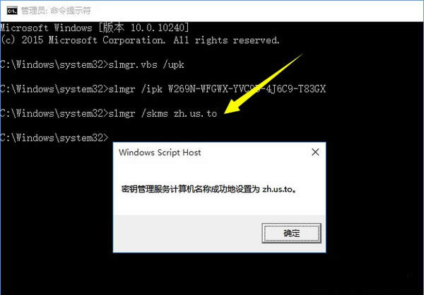 激活密鑰截圖(3) 4、然后繼續輸入以下命令: 01slmgr /skms zh.us.to 回車彈出“密鑰管理服務計算機名成功的設置為zh.us.to”的提示。成功連接上服務器