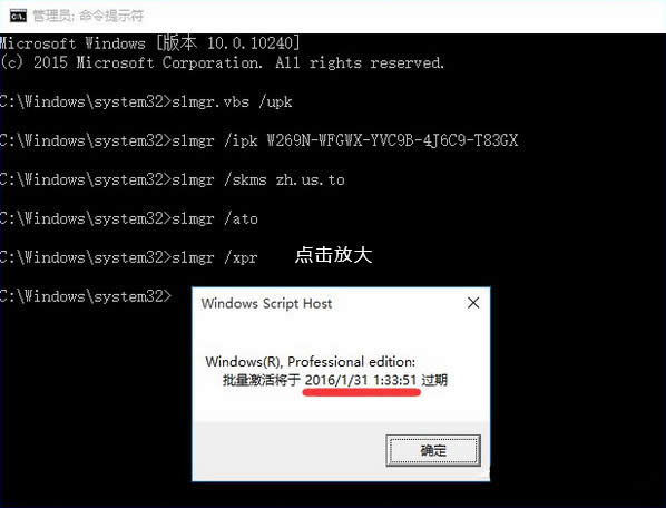 激活密鑰截圖(5) 6、如果你想查看一下激活天數,輸入以下命令: 01slmgr /xpr 回車彈出窗口,提示”批量激活的過期時間”。告訴你于什么時間過期 時間到了后我們就可以再使用激活一次,不要嫌麻煩,要知道180天已經是小半年了可以使用很久了。