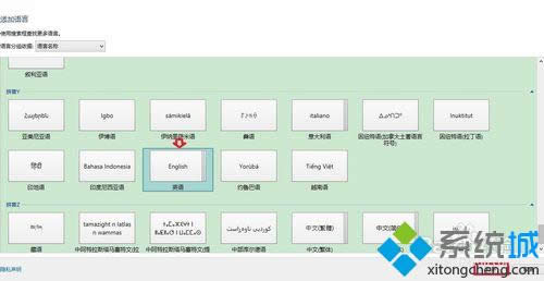 3、選擇English 英語-打開。語言分組依據默認是根據語言名稱分類,英語的拼音開頭是Y,所有位于Y組語言,可自行調整左上角的語言分組依據;