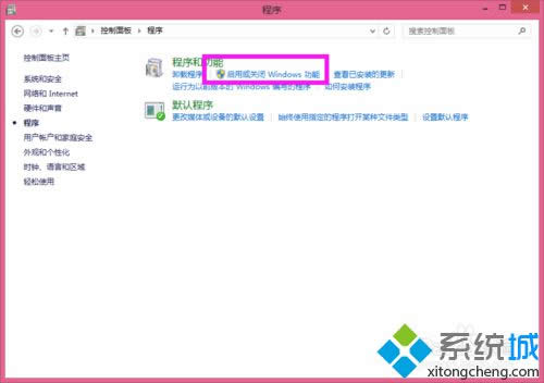 2、選擇【程序和功能】下的【啟用和關(guān)閉Windows功能】;